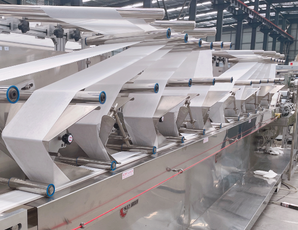 ? ? 估計(jì)還有很多人想問加工廠是不是需要很多人,這個(gè)是不需要的,現(xiàn)在濕巾生產(chǎn)過程非常簡單,海德晟自主研發(fā)生產(chǎn)的全自動(dòng)濕巾機(jī),從上料,分切,折疊,加濕,計(jì)數(shù),貼標(biāo),打碼,開口,成型,包裝,封口等,全部都是一體化操作,減少人工,提升效率。